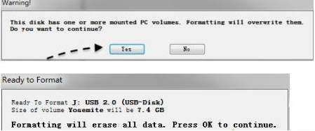4、这时会连续弹出对话框,提示将进行格式化,都点击Yes或OK。