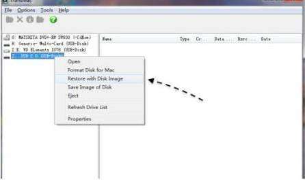 6、格式化之后,右键U盘选择“Restore with Disk Image”,选择mac os x镜像。