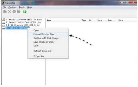 2、插入准备好的U盘,U盘数据要转移,打开TransMac,右键要制作启动盘的U盘名称,选择“Format Disk for Mac”,将u盘格式化成Mac下的格式。