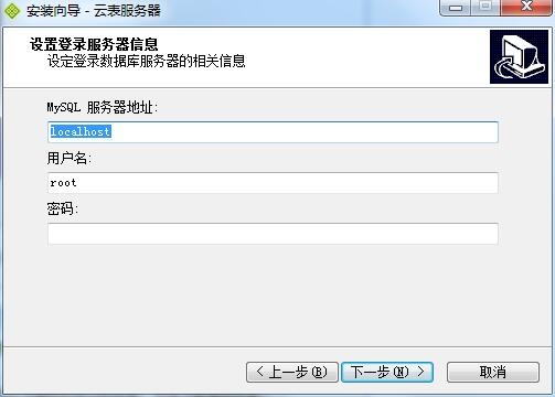 6、输入本地的Mysql服务器的地址、用户名及密码,地址一般使用本机的localhost,如果是远程的,则填写对应的IP地址。用户名默认是root,如果使用的是SQL Server,则用户名默认是sa。对于SQL Server数据库,填入密码并点击下一步的时候,如果密码不对,则会提示连接失败。而Mysql数据库则会跳过检查。