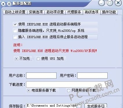2、进入灰鸽子远程控制软件服务器配置界面后,设置上线域名和ip地址。