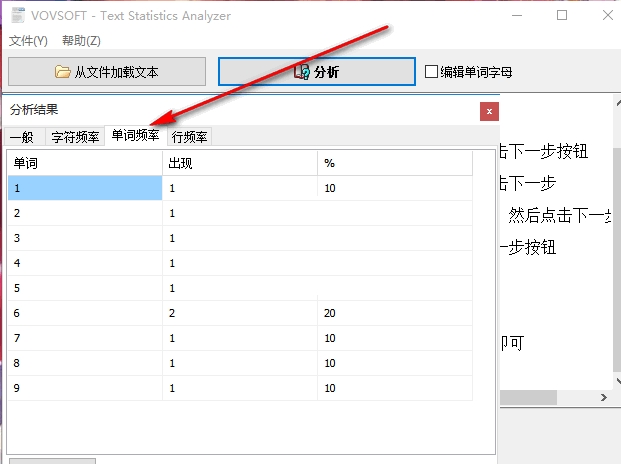 7、点击字符频率按钮,即可弹出字符频率信息,以供参考