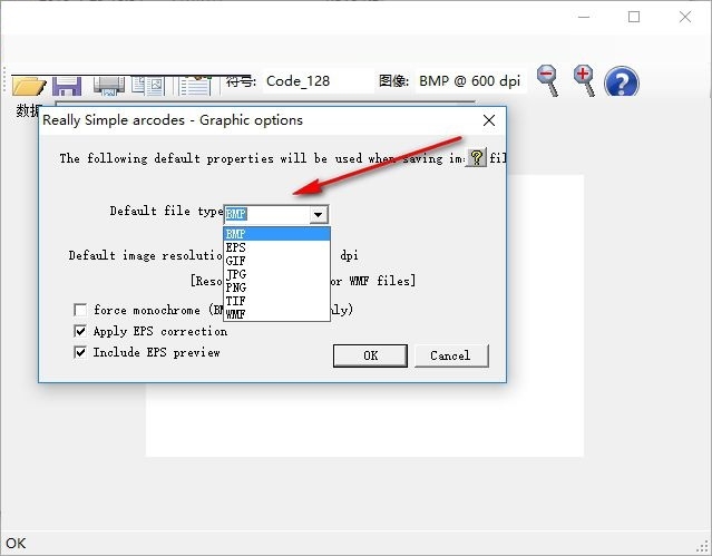 4、设计条码输出的图像格式,一般就选择BMP位图的格式就好了,这个格式保存的图形比较好