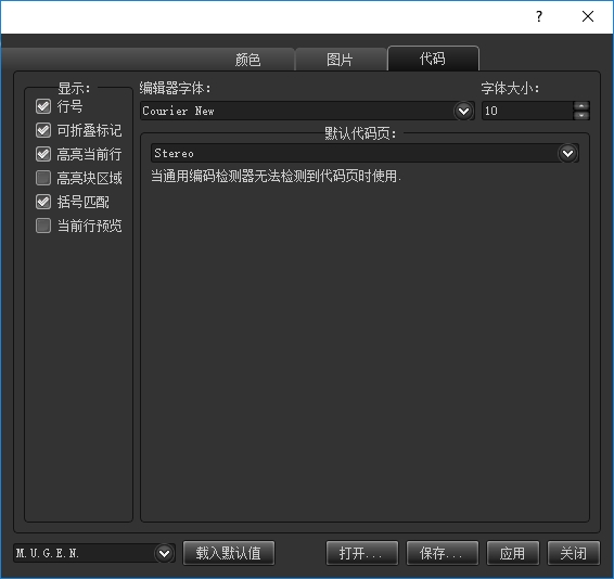 14、可折叠标记、高亮当前行、高亮块区域、括号匹配,当前行预览,当通用编码检测器无法检测到代码页时使用.