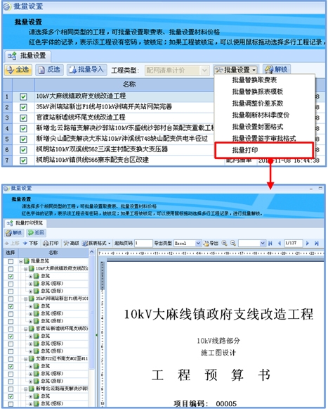批量设置多个工程的设备材料价格、编制年价差、取费表、封面格式、报表模板、签字审批格式等,极大提高工作效率。