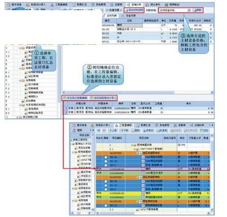 在主辅分析界面按项目划分自动汇总材料清册,具备物资反查和定位功能,在反查输出列表选择目标清单,快速定位到标准设计界面或者工程量编辑界面,方便用户进行信息修改,提高工程文件编制效率。选用所需的材料信息价格,批量刷新工程的主材设备价格,满足主材设备价格变更需求。