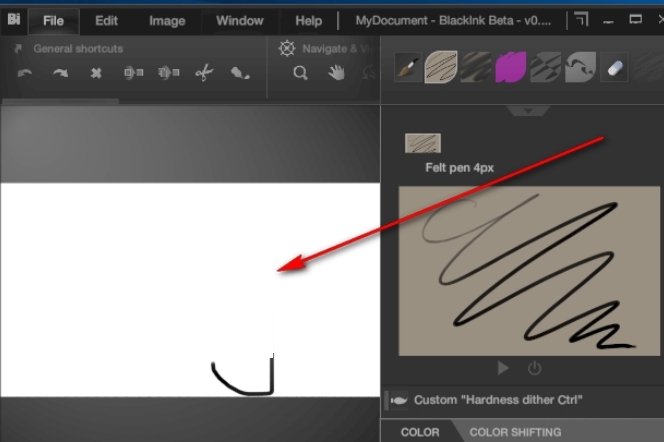 Black Ink 还提供了关于用户体验的不同方法:通过设置历史记录和颜色历史来即时访问笔刷参数,使用实时设置窗口进行即时预览和笔刷定制,以及更加用户友好的创新。