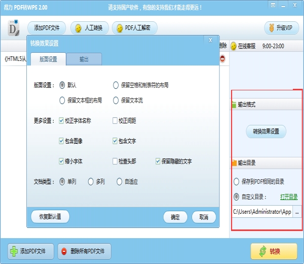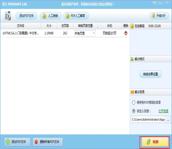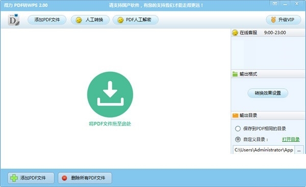 得力PDF转WPS能够很好保存PDF文档中的文本、图片、排版、超链接,最大限度地将PDF文档转换成WPS文档,方便你编辑使用。如果要转换的 PDF是加密的,请先在软件中输入PDF文档密码,然后就可以直接转换了。得力PDF转WPS支持批量添加PDF文档,你可以直接把文件拖拽到窗口里,或 者是单机添加文件来加入你所需要转换的PDF文档。