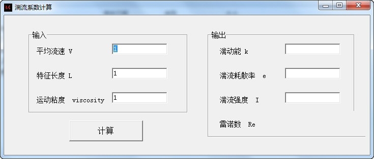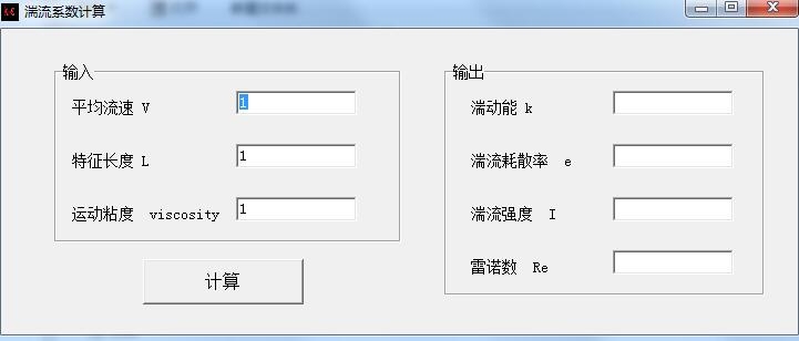 湍流系数计算软件最新版是款占用空间十分小且界面简洁大方,功能实用的湍流k-ε经验计算软件,湍流系数计算软件最新版操作十分简单,只需用户输入平均流速V、特征长度L、运动粘度viscosity,点“计算”就可以得到湍动能k、湍流耗散率e、湍流强度I和雷诺数Re。 湍流系数计算软件无需专业知识,即可操作。