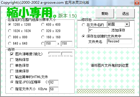 同时拖放多个图片文件,就可以方便地缩小jpeg文件。