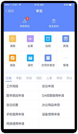 项目审批、财务审批、行政考勤审批、新建流程、待办流程、已办流程、我的申请、流程搜索,实现全流程监控规范审批流程,信息化多终端审批,提高整体业务响应时效,带动企业团队协作力