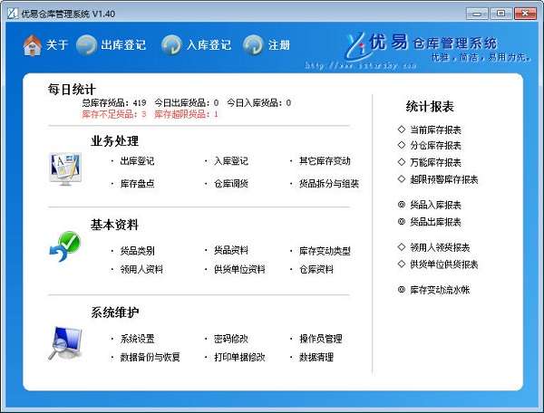 优易仓库管理系统为你提供方便快捷的仓库管理解决办法,让你在日常管理过程中能够降低不少负担。软件使用简单方便,每天的进出还能做成统计报表,让你在每个月总结的时候有相应的数据统计可以查看。快来下载试用吧!