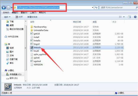 根据第一张图图示红框中的路径找到PLMLicenseServer文件夹打开,再根据第二张图示红框路径提示找到PLMLicenseServer文件夹打开复制“ugslmd”到“第一张图中去”。复制替换即可。