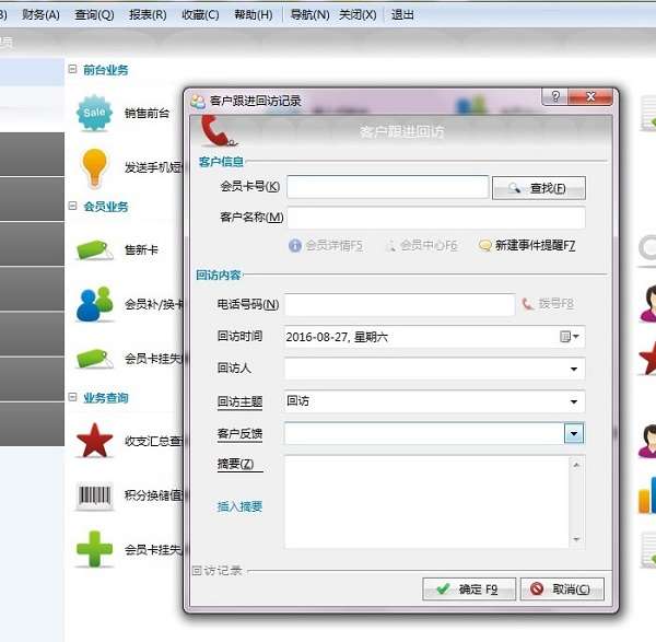 9) 生日提示:启动软件可自动提示过阳历生日(也含当天阴历)的会员信息,可设置自动生成会员生日短信。