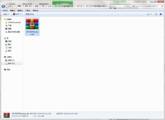 1、下载以后得到JDY-30 SPP蓝牙模块手册V2.7.pdf。可以直接打开查看里面的介绍