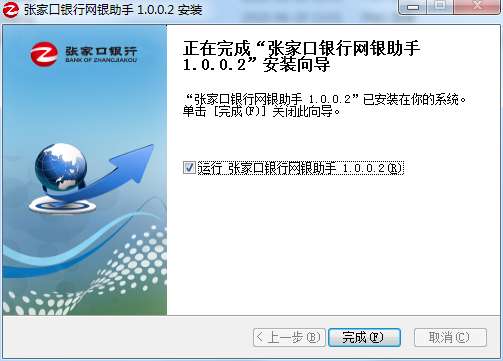 3、张家口市商业银行网银助手官方版安装成功,点击完成即可运行软件