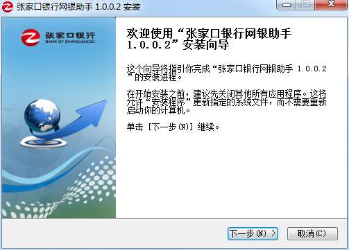 1、在PC下载网下载张家口市商业银行网银助手官方版的压缩包,解压后,双击exe文件,进入安装界面,点击下一步