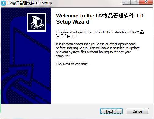 3.双击打开,进入R2办公用品管理软件界面,点击下一步