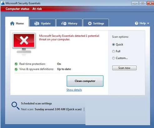 如果电脑遭受恶意威胁,即使是你不在电脑面前。MSE也会替你搞定一切。