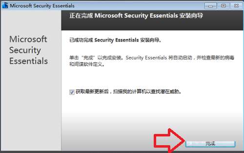 3、微软杀毒软件官网(MSE2012)安装结束,点击完成即可。