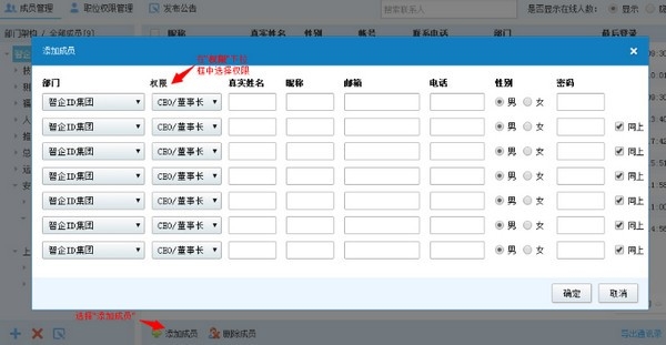 3.在“成员管理”中,添加成员时即可设置权限。