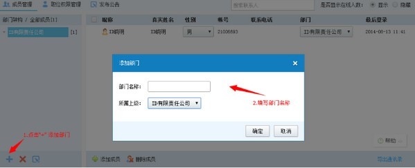 2.选中已添加的部门名称,添加企业成员,设置员工信息。(添加成员即建立一个ID个人帐号)