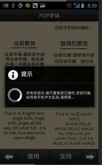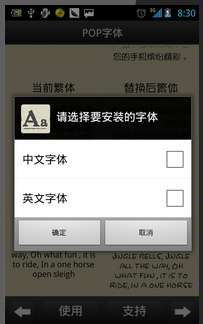 切换手机字体,已POP字体为例,在点击POP字体则进入如下界面,软体会显示切换后和切换前的字体对比。