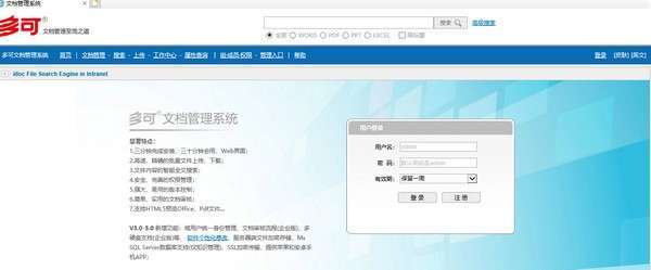多可企业文档管理系统为 B/S构架集成系统,通过系统完成对企业文档的集成存储、分组分文件夹展示,文档内容全文检索、文件预览下载及打印控制、修改及版本管理、文档审核、文件及用户的密级管理、数据备份、数据加密存储等。它能帮助企业管理海量的文档和各类的数字资产,让尘封的文档飞跃成为优质数字资产。系统安装使用非常简单,使用成本和维护成本都非常低。