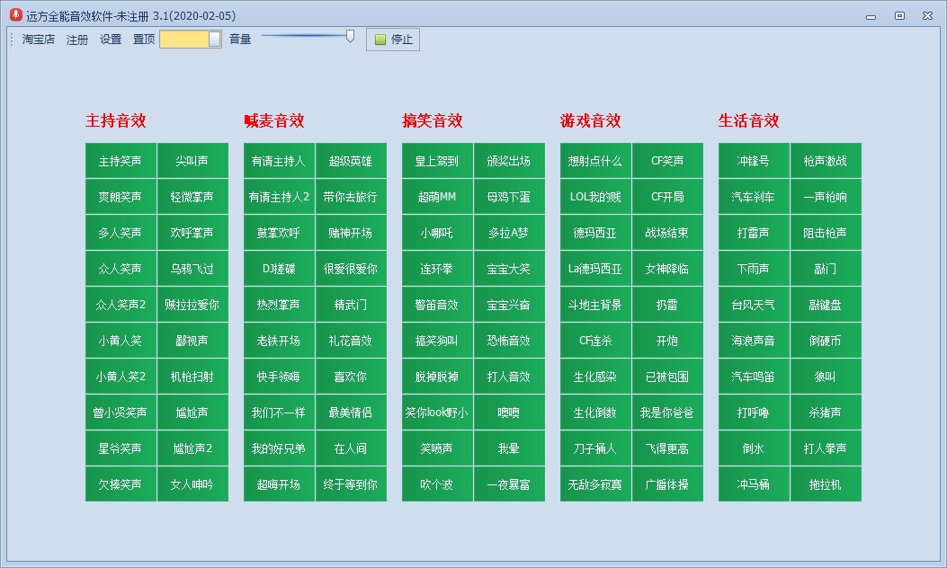远方全能音效软件最新版是一款十分优秀的主播音效辅助软件,远方全能音效软件最新版的内容丰富实用,为广大用户朋友提供主持音效、喊麦音效、搞笑音效、游戏音效和生活音效5个分类,共100个音效按钮。此外远方全能音效软件官方版的按钮都能自定义设置音效文件、快捷键、按钮大小,按钮背景、自由拖动改变布局等等。