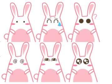 一只粉色可爱的小兔子,相信小女孩儿们一定喜欢!表情有:眼睛亮晶晶,左右看,88!笑呵呵,汗,晕,流泪,bye!疑问,眨眼,笑弯了眼。