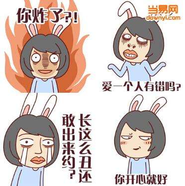 一个长着兔耳朵的小姑娘,表情有:你炸了?!爱一个人有错吗?长这么丑还敢出来约?你开心就好,我跟你熟?到底是想怎样?你丑的我都没有知觉了!瞧你那蠢样,别客气,照这砍,不行别逼逼,本大王不在你就到处放肆,怪我咯?有话好好说,别发自拍..