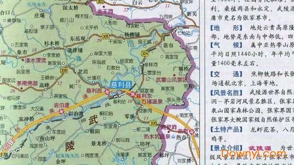 软件标签: 张家界市地图 湖南地图
