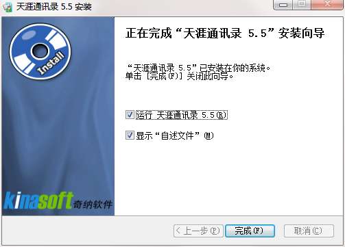 6.点击完成,天涯通讯录软件安装成功