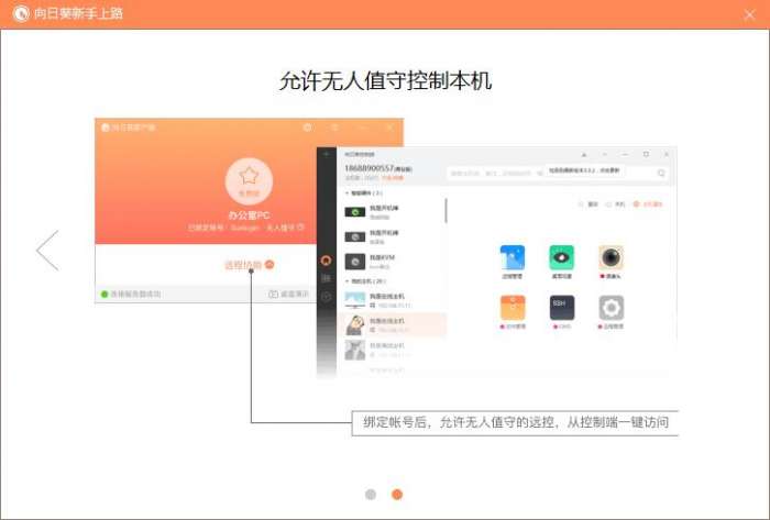 向日葵远程控制软件被控端官方版是款实现一键远程开关机的远程控制工具。向日葵远程控制软件被控端电脑版可以实现对远程主机进行远程桌面、远程管理、远程文件、远程摄像头、远程重启关机等操作。向日葵远程控制软件被控端还可以访问远程主机的OA服务、网站、FTP服务,远程控制电脑、路由器,进行视频监控,并且不需要做端口映射。
