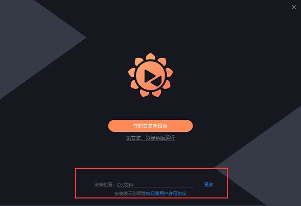 2、这里建议将文件安装在D盘,点击“立即安装向日葵”即可进入下一步