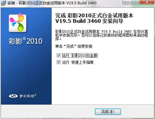 8.点击完成,彩影软件安装成功