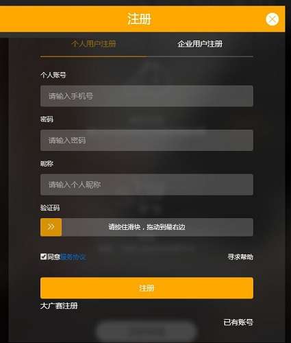 2、进入软件的注册界面,包括了个人账号、密码、昵称、验证码等;