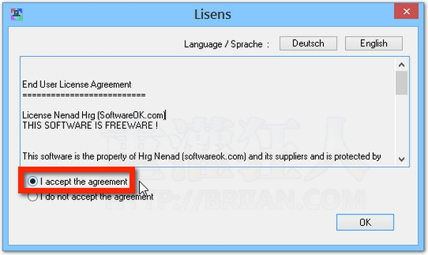 第1步:将 StressMyPC软件下载回来、点两下执行“StressMyPC.exe”文件。出现如下的画面时,点“I accept the agreement”再按“OK”按钮即可开始使用。