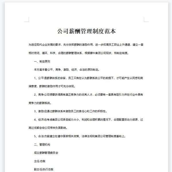 公司薪酬管理制度的范本是规范公司薪酬制度的范本模板。公司将根据公司效益以及员工全年的工作表现评审结果对员工工资进行调整,具体调整幅度由公司决定。