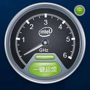 2、软件会显示未超频时的表盘界面,频率指针表示CPU的实时频率并动态摆动。绿色部分代表该CPU的默认频率范围,灰色部分代表超频后该CPU可到达的新增频率范围;