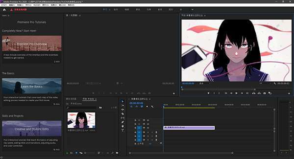 首先打开一个现有项目,也可以从Premiere Pro开始屏幕启动一个新项目。