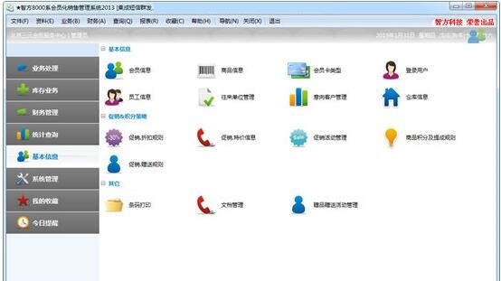 积分兑换功能;丰富的统计报表:可根据多种查询条件进行各种信息的明细查询及打印,可满足如销售行业进行日常对会员及消费管理的需求。智方软件支持对会员的短信回访,支持对操作人员的指纹管理需求. 智方8000系会员化销售管理系统(会员管理、销售管理、POS销售软件)是会员化销售经营单位实现信息化管理强大实用的管理工具。