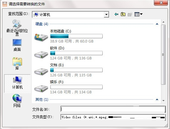 2、点击添加按钮选择需要转换的视频文件。