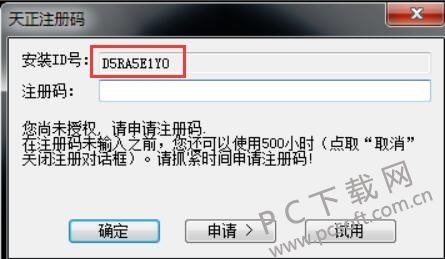 1、下载安装好天正建筑2014软件后,我们在桌面双击快捷图标就可以进入到软件界面,这是后会弹出注册窗口,我们需要复制下图中的安装ID号。