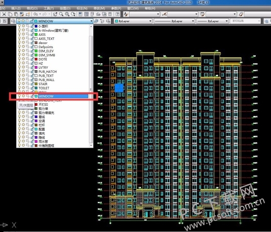 2、如果需要关闭窗户的图层,则选择其中一段或者一部分窗户图层上的模型,在天正建筑2014破解版图层管理器中找到Windows图层。
