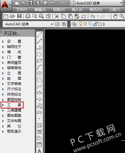 1、打开在本站下载的天正建筑2014破解版软件,打开软件后点击左侧的【工具】选项。