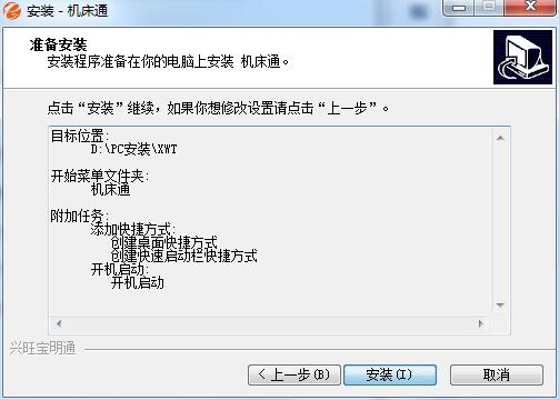 4、确认安装将在开始菜单中创建名为"机床通"的菜单项,本系统运行的快捷方式存储在该菜单中,选择好后点击『下一步』: