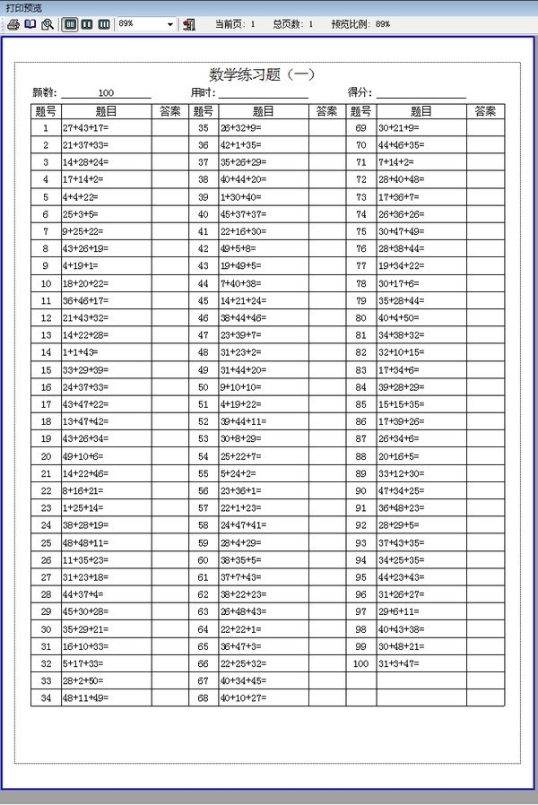 3、数字1范围:用于保证出题数字1的范围,如果是减法必须要比数字2大