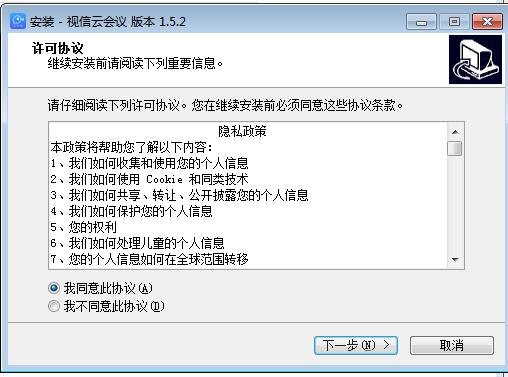 1、打开sxmeeting.exe将其安装到你的电脑,点击接受协议