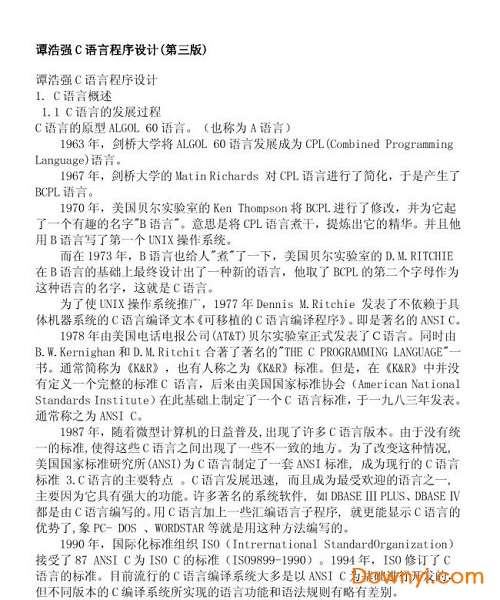谭浩强c语言程序设计第三版介绍